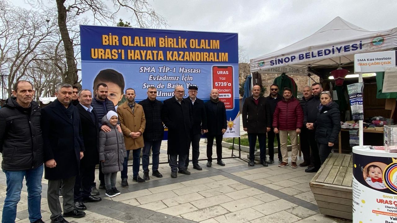 SMA Tip-1 hastası Sinoplu Uras Çağrı bebek için sivil toplum kuruluşu ve siyasi parti temsilcilerinin Uğur Mumcu Meydanı’nda tuttuğu destek nöbetini bugün AK Parti Sinop İl Başkanlığı devraldı. Destek nöbetine birçok vatandaş katılarak Uras Çağrı için bağış yaptı.