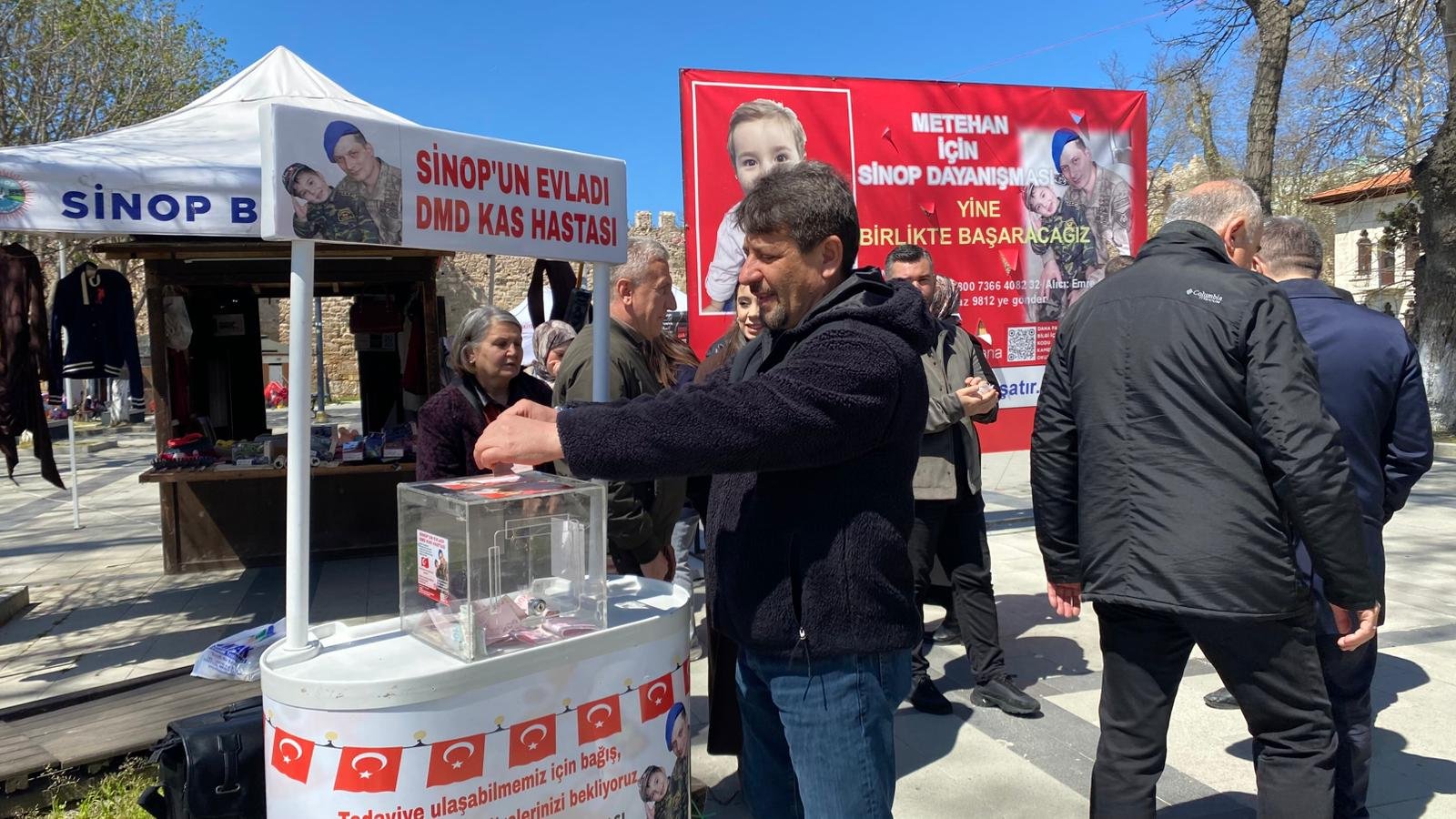 Sinoplu Jandarma Astsubay Üst Çavuş Emre Gölgeci’nin 3 yaşındaki Duchenne Musküler Distrofi (DMD) hastası oğlu Metehan Gölgeci’nin tedavi sürecine destek sağlamak amacıyla yardım kampanyası sürdürülüyor. AK Parti Sinop İl Teşkilatı da kampanyaya destek vermek için Uğur Mumcu Meydanı’nda kurulan stantta nöbet tuttu.