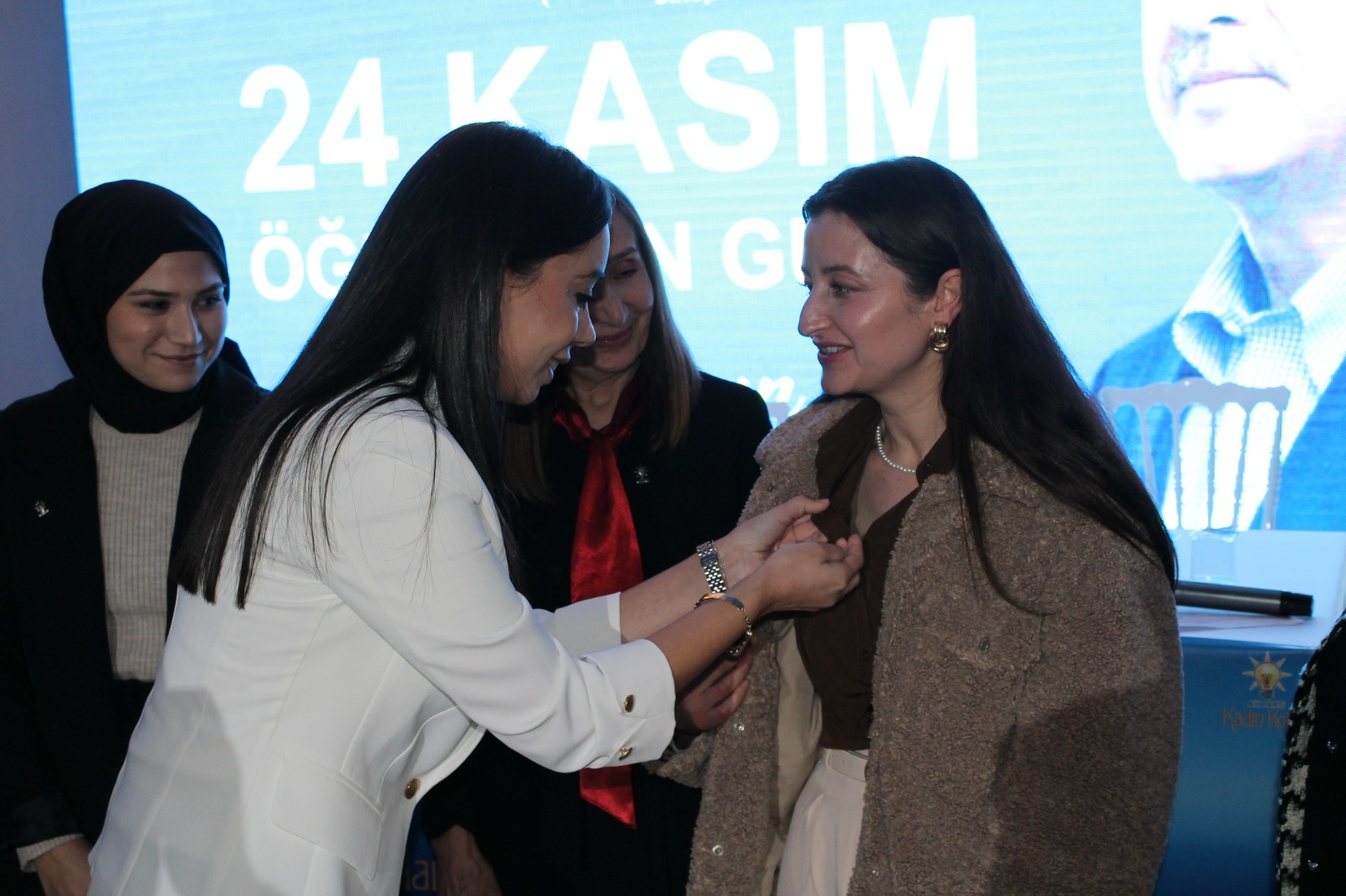 Yeni üyeler tek tek sahneye davet edilerek, parti rozetleri MYKY Üyesi Havva Sabuncuoğlu ve İl Koordinatörü Ayşegül Baysal tarafından takdim edildi. Başkan Üçüncüoğlu ise, yeni üye kadınlara; “Partimize hoş geldiniz. Sizleri aramızda görmekten son derece memnuniyet duyduk. Sizlerle daha güçlüyüz.” diyerek temennilerini iletti.