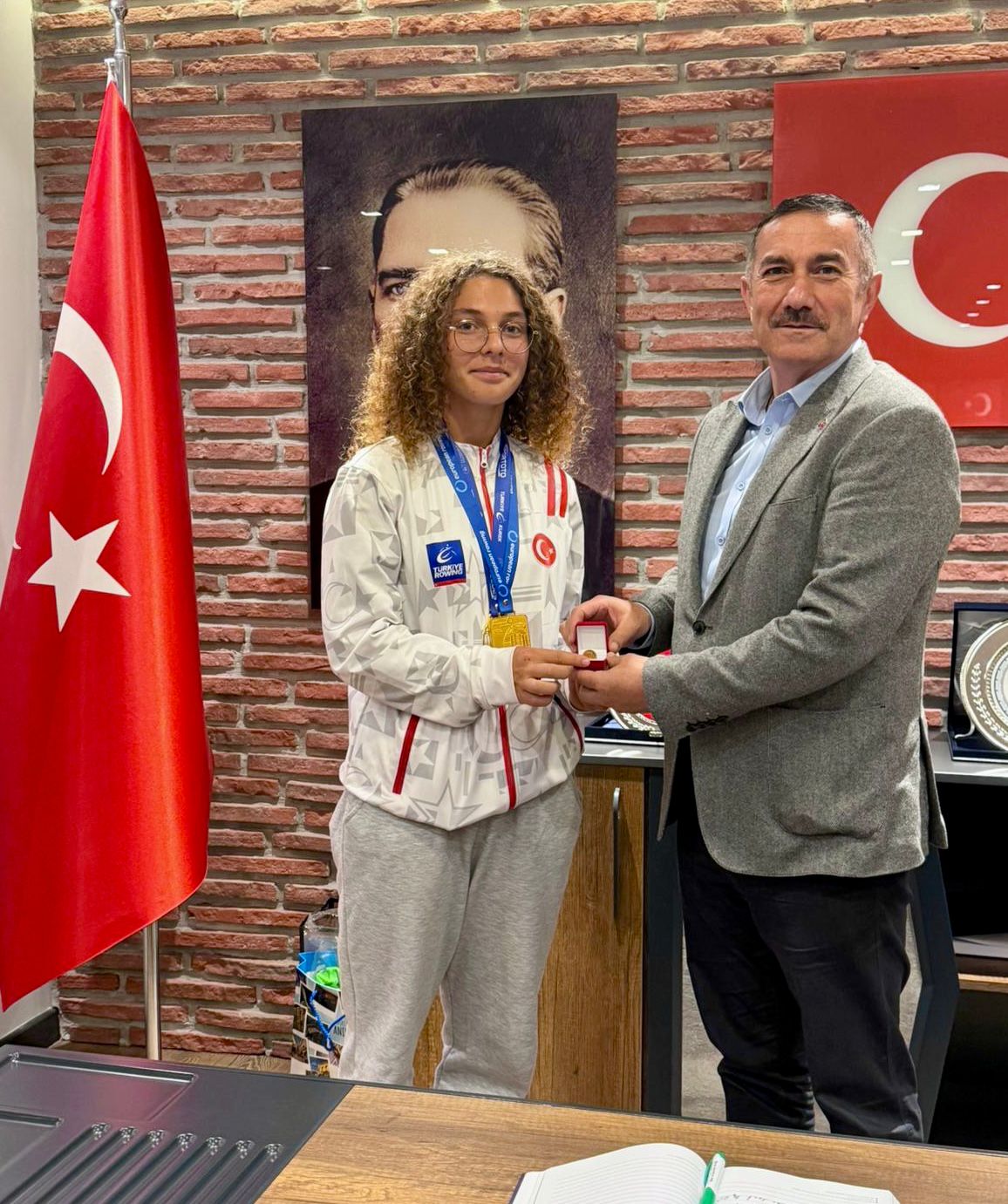 Ziyaretin sonunda, günün anısına Başkan Üçüncüoğlu sporculara birer Cumhuriyet altını hediye etti.