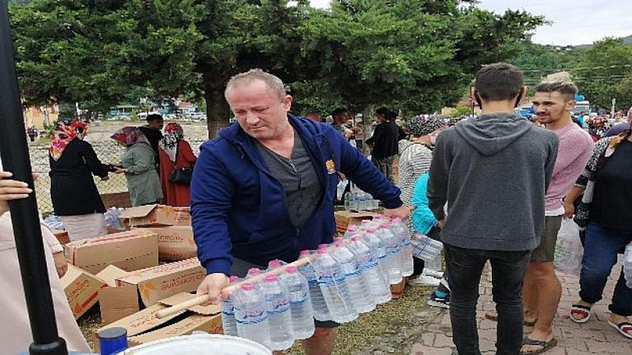 Sinop'un Ayancık ilçesinde sel felaketi yüzünden kapanan ulaşım yolları açılınca vatandaşa su, ekmek gibi erzak dağıtılmaya başlandı.