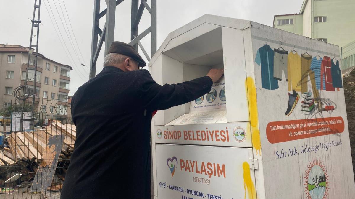 Olay yerine gelen Gazeteci Osman Aksu, çöp kutusuna atılan eşyaları görünce tepki gösterdi. Belediyeye ait giysi kumbarasının bulunduğunu hatırlatan Aksu, "Burada giysi kutusu varken bu kıyafetlerin çöpe atılması doğru değil. Onların yapmadığını ben yapıyorum" diyerek çöpe atılan eşyaları tek tek toplayıp giysi kutusuna yerleştirdi.