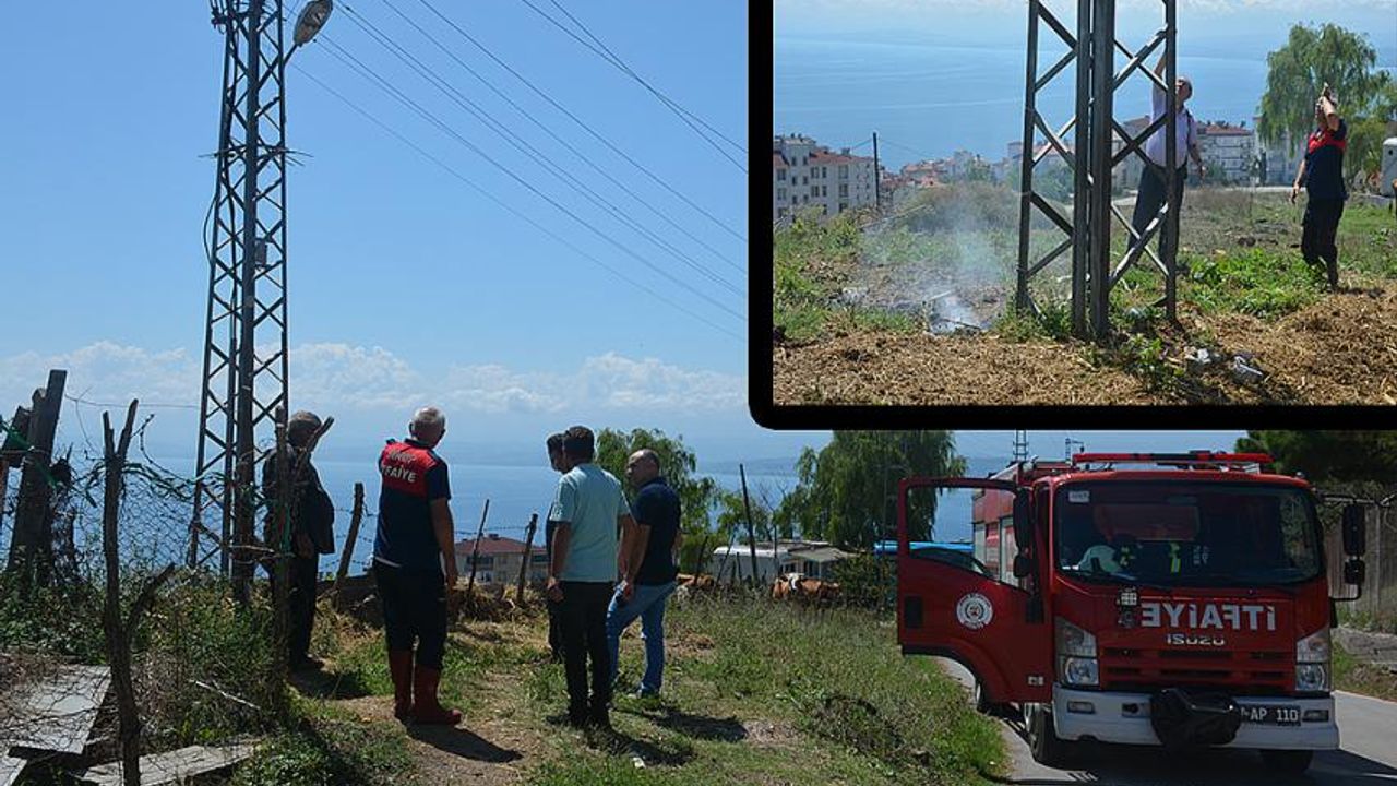Sinop’ta yüksek gerilim hattından sıçrayan kıvılcımın otları tutuşturması sonucu yangın çıktı. Yangın çıkan bölgede hayvanlarını otlatan vatandaş hayvanlarını hemen güvenli bölgeye topladı.