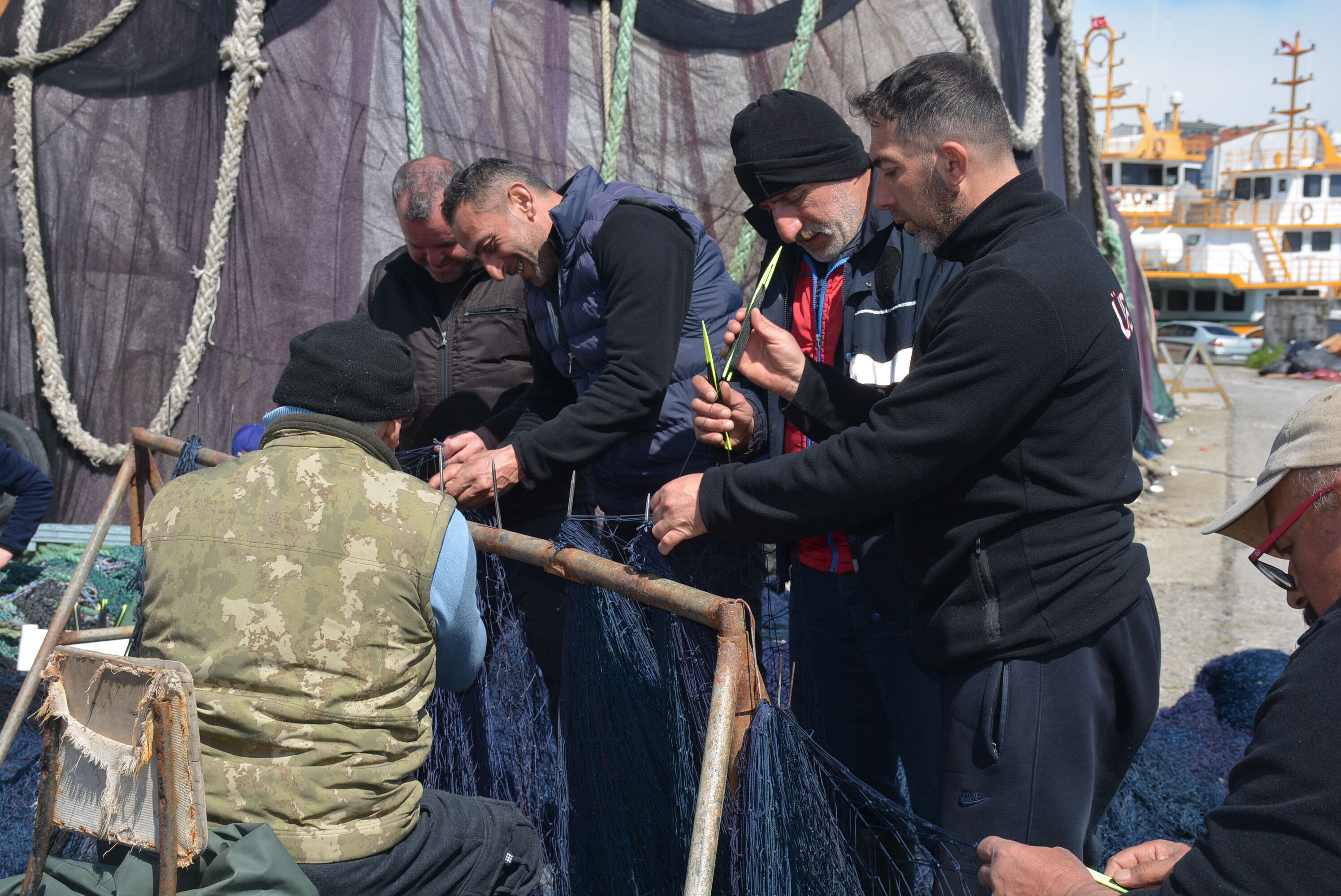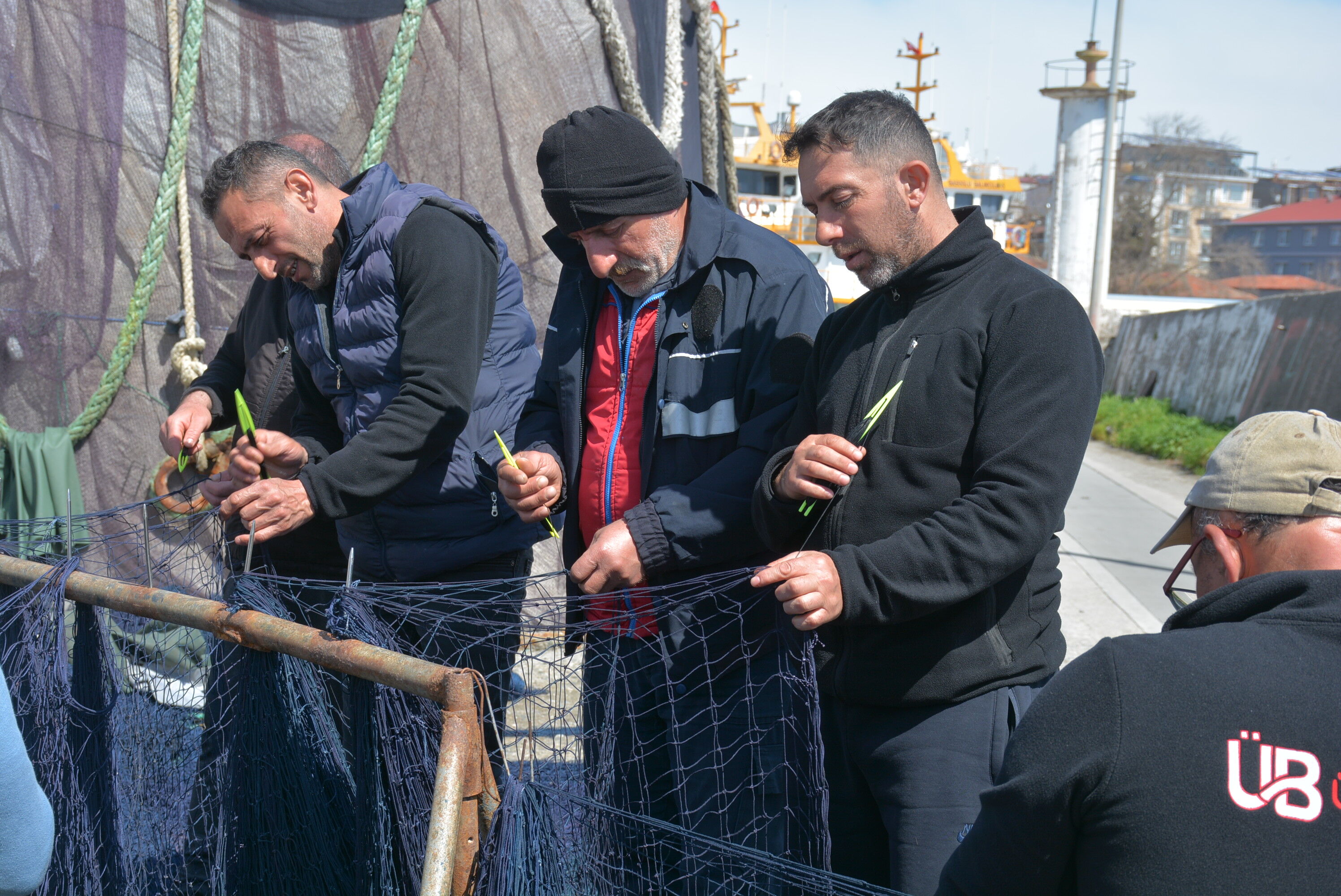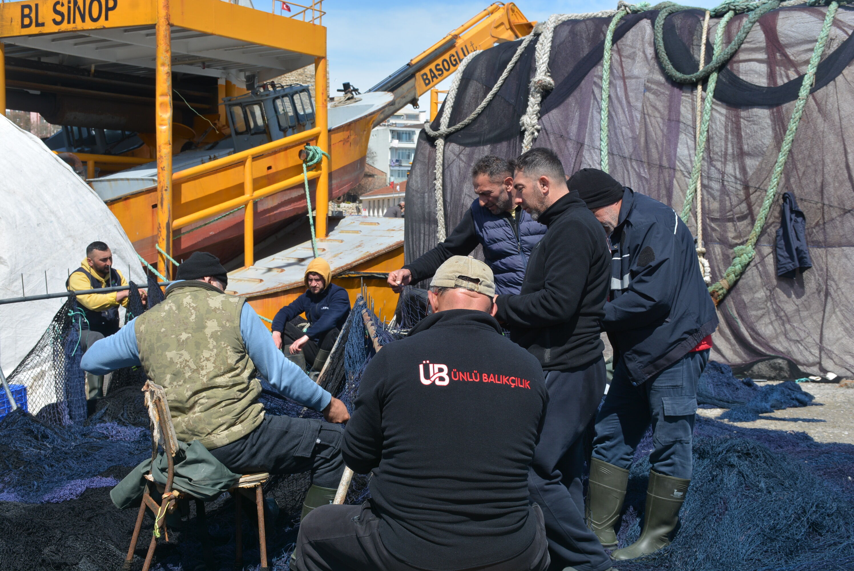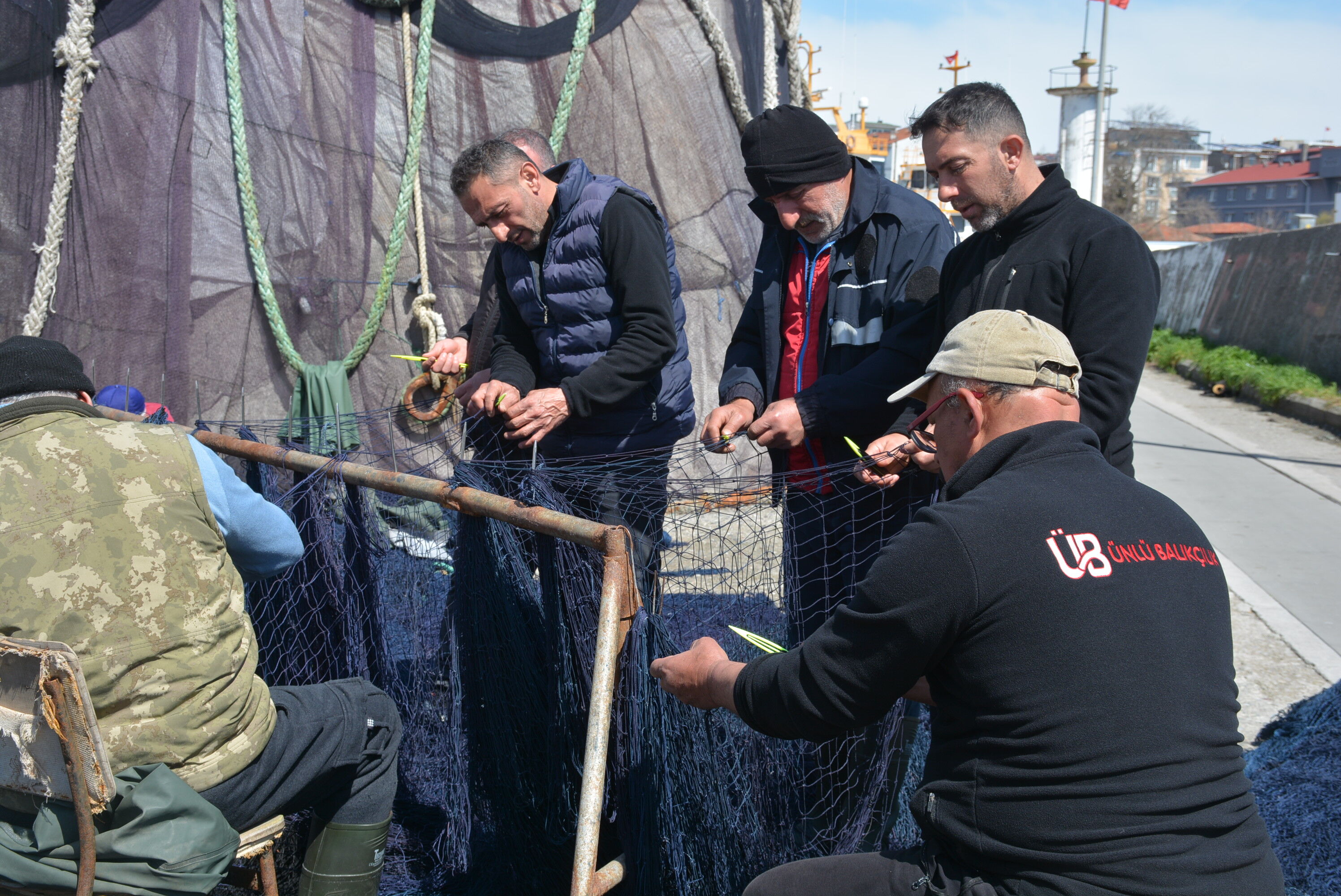 Türkiye’de önemli balıkçılık şehirlerinden olan Sinop’ta balıkçılar, 15 Nisan’da sona erecek sezonun bitimine sayılı günler kala yıpranan ağlarını onarmaya başladı.