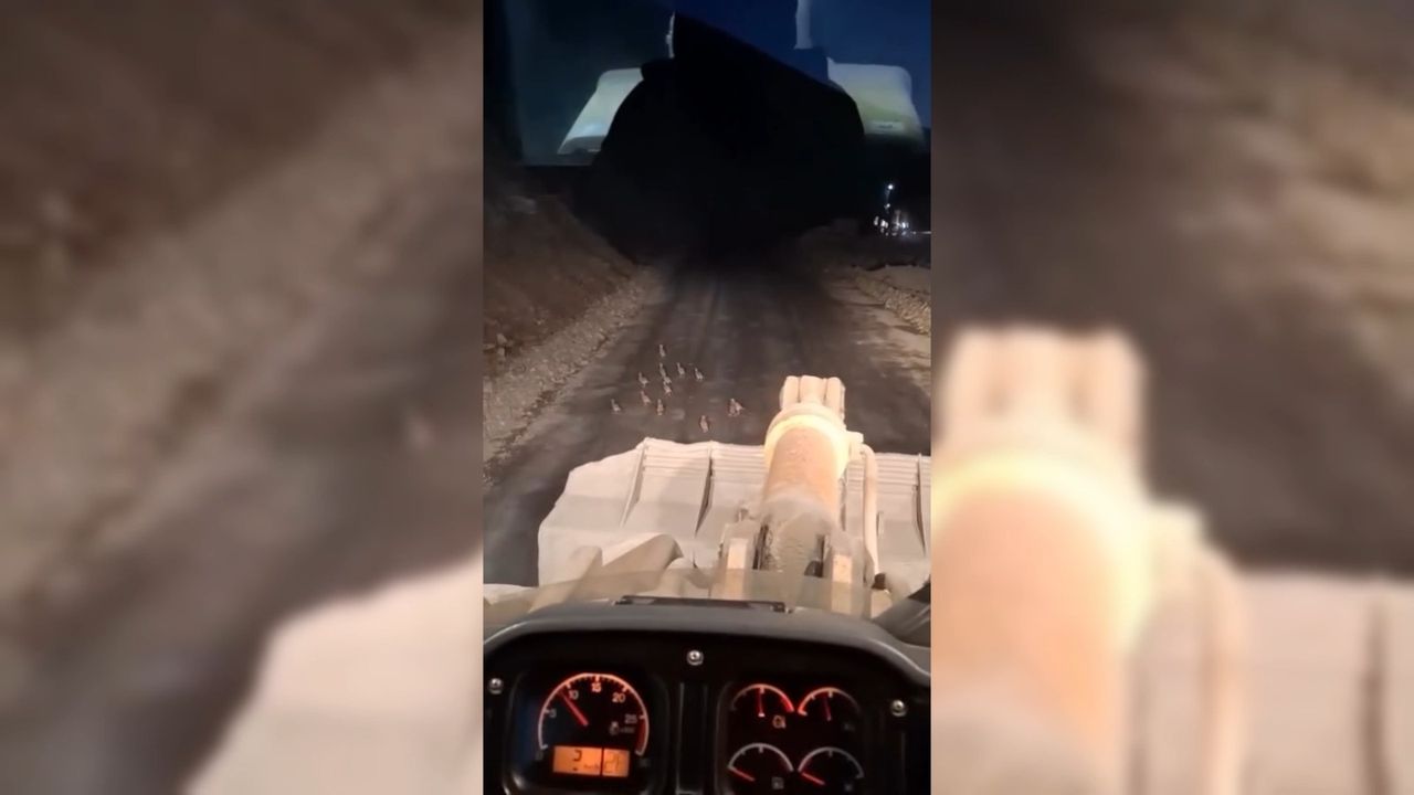 Sinop’un Boyabat ilçesinde yol çalışması yapan bir iş makinesi operatörü, önüne çıkan keklik yavrularını fark edince çalışmasını durdurdu.