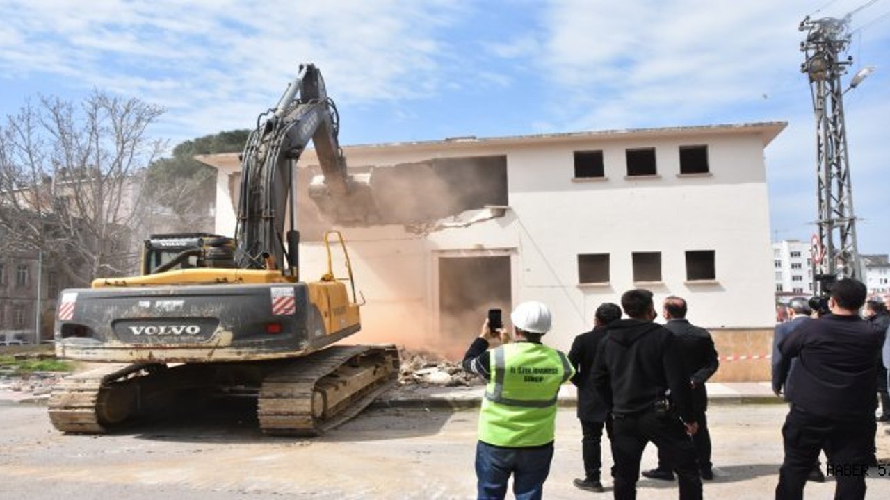 Maviş, "Meydan Projesi'nin bugün burada ilk somut ve fiili adımını atıyoruz. Ağız ve Diş Sağlığı olarak bilinen ve son dönemde de Adliye Ek Hizmet Binası olarak görev yapan binanın yıkımını gerçekleştirdik. Hayırlı uğurlu olsun" dedi.