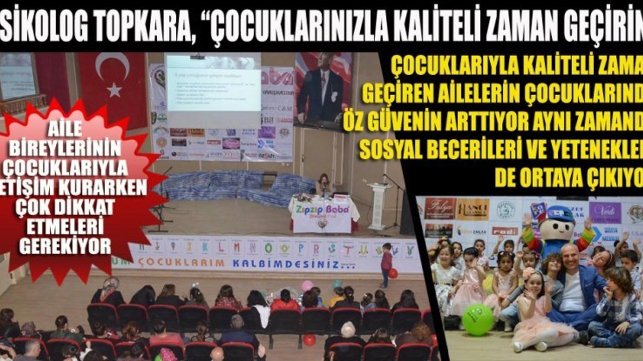 “Zıp Zıp Baba eğlence dünyası” tarafından Halk Eğitim Merkez Salonunda düzenlenen çocuklara yönelik bir etkinlikte konuşan Uzman Klinik Psikolog ve Aile danışmanı Demet Topkara, anne ve babaların çocuklarıyla kaliteli bir zaman geçirmelerini istedi.