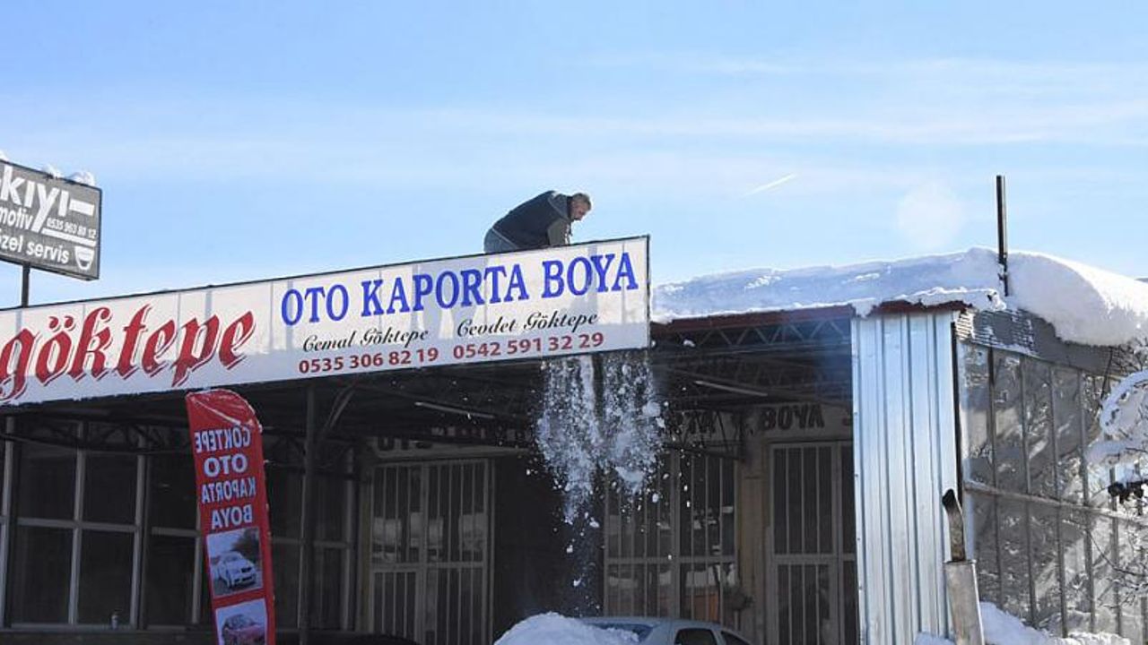 Sinop’ta etkisini sürdüren kar yağışı, kenti beyaza bürüdü. Kar yağışının ara ara durmasıyla birlikte sanayi esnafları, dükkanlarının önünde ve çatısında biriken karları temizlemeye başladı.
