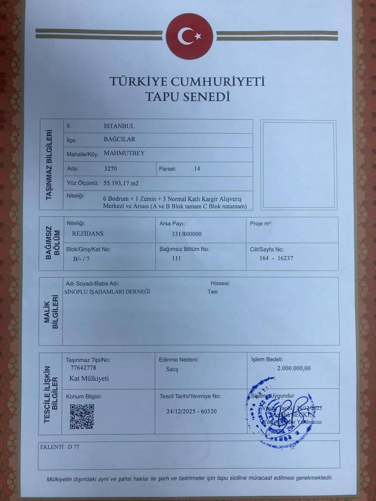 Ağaoğlu My Office’te bulunan ve bugüne kadar iş insanı Rafet Orhan adına kayıtlı olan genel merkez binası, yürütülen hukuki ve idari sürecin tamamlanmasıyla birlikte resmen Sinoplu İş Adamları Derneği mülkiyetine geçti.