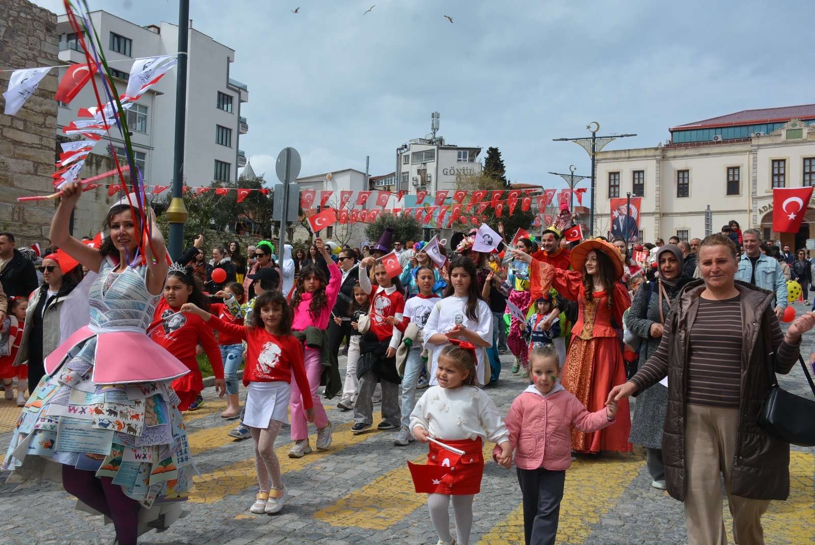 Sinop’ta 23 Nisan Ulusal Egemenlik ve Çocuk Bayramı, belediyenin düzenlediği geniş kapsamlı bir şenlikle kutlandı. Kaleyazısı mevkiinden hareket eden ve ellerinde Türk bayraklarıyla marşlara eşlik eden çocukların kortej yürüyüşü, vatandaşlardan büyük alkış aldı. Cadde boyunca süren yürüyüşün ardından şenlik alanı olan Uğur Mumcu Meydanı’na ulaşıldı. Uğur Mumcu Meydanı’nda kurulan platformda sahne alan Sinop Telvin Sanat Akademisi öğrencileri, hazırladıkları dans performanslarıyla büyük beğeni topladı. Akranlarının gösterilerini ilgiyle izleyen minikler, çalan şarkılar eşliğinde doyasıya eğlendi. Etkinlik alanında çocuklara çeşitli ikramlar sunulurken, bayramın anısına her çocuğa ağaç fidanı hediye edildi.