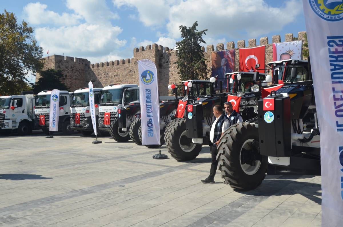 Sinop’ta İl Özel İdaresi “Makine Parkı Güçlendirme ve Araç Teslim” töreni düzenlendi. Program kapsamında Özel İdare filosuna katılan 12 yeni iş makinesi tanıtıldı.