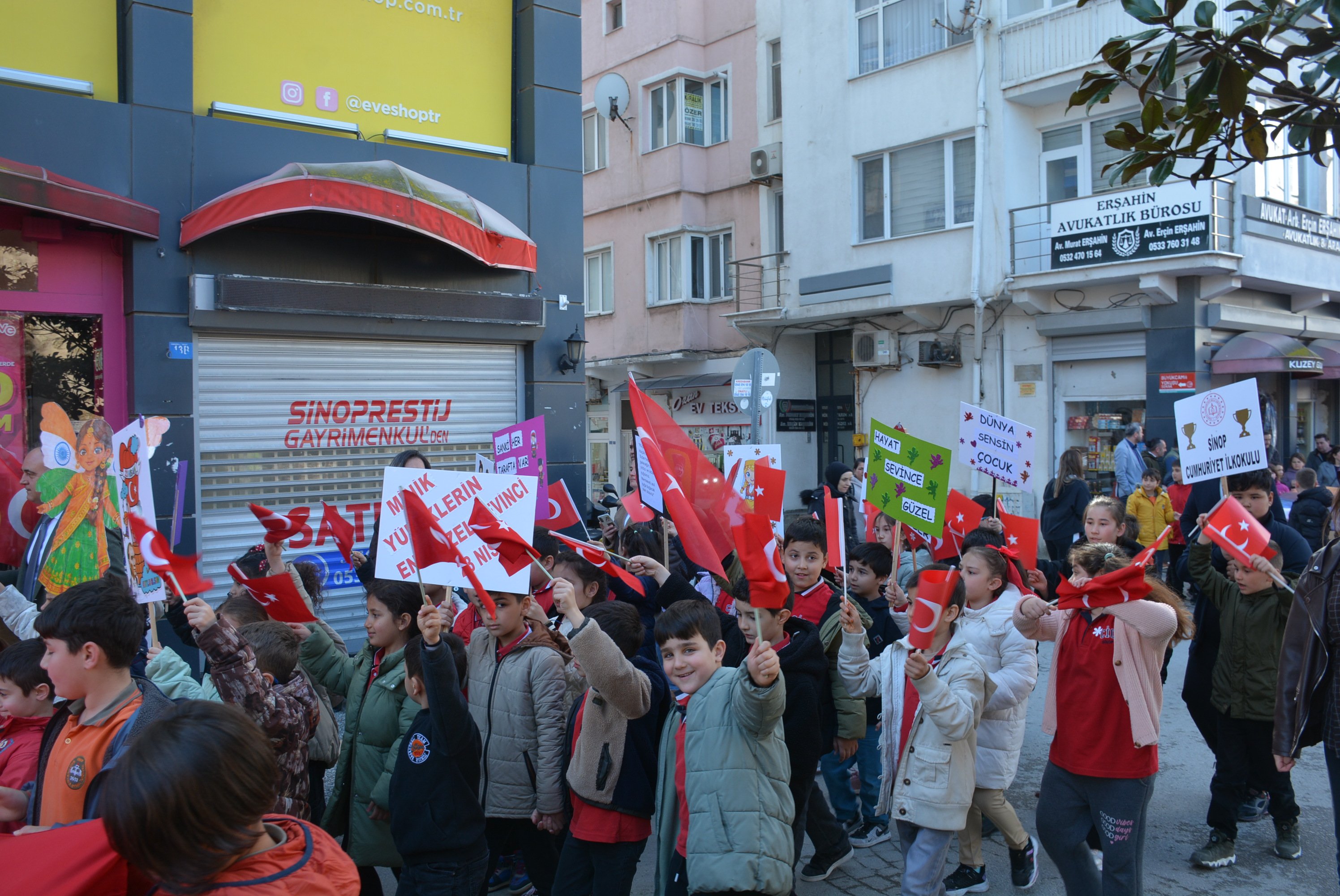 Kutlamaların ilk durağı olan Sakarya Caddesi, ellerinde ay-yıldızlı bayraklarla yürüyen öğrencilerin coşkusuna ev sahipliği yaptı. Hep bir ağızdan seslendirilen marşlar eşliğinde ilerleyen kortej, kentin ana damarlarını geçerek Uğur Mumcu Meydanı’na ulaştı. Yol boyunca çocukları yalnız bırakmayan Sinoplular, pencerelerden ve kaldırımlardan alkışlarla bu heyecana ortak oldu. Yürüyüşün varış noktasında kurulan sahnede ise bayram heyecanı doruğa çıktı. Öğrencilerin büyük bir disiplin ve estetikle sergilediği halk oyunları performansları, izleyenlerden tam not aldı. Yöresel kostümleriyle meydanı renklendiren çocukların sergilediği figürler, Sinop’un kültürel zenginliğini bir kez daha gözler önüne serdi.