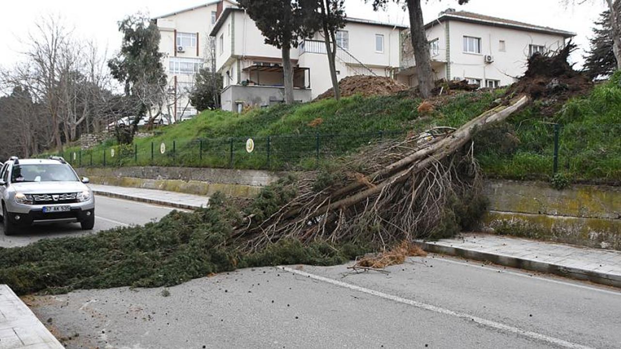 Sinop’ta öğle saatlerinde etkili olan şiddetli rüzgar nedeniyle bir ağaç yola yıkıldı.