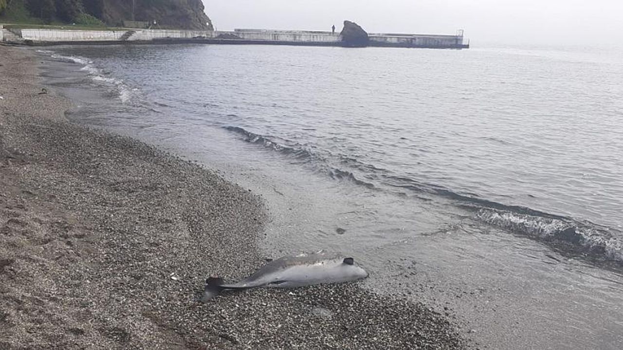 Sinop'ta sahilde kıyıya vurmuş bir ölü yunus bulundu.