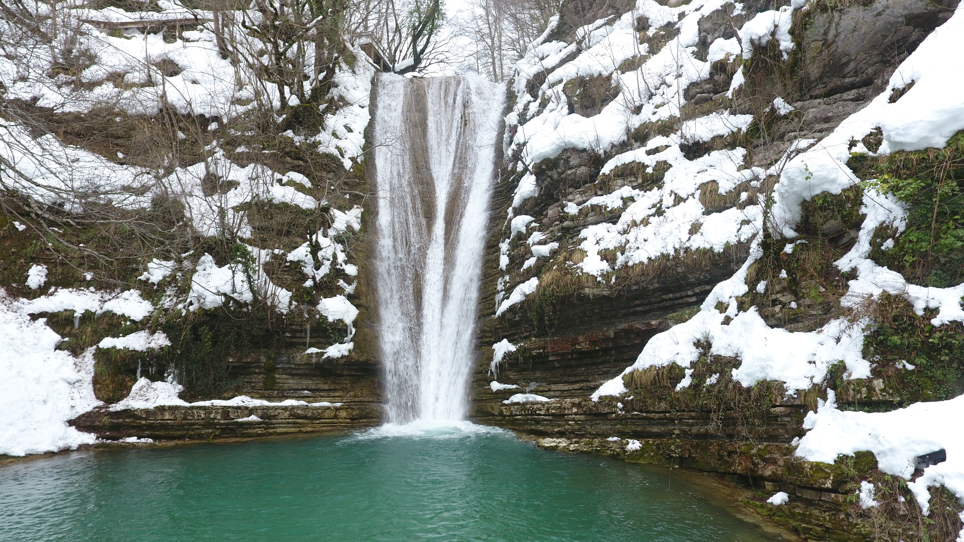 Sinop'un Erfelek ilçesinde iki ormanın birleştiği derin vadi içerisinde akan irili ufaklı 28 şelaleden oluşan, 720 dekarlık alana sahip olan Erfelek Tatlıca Şelaleleri, beyaz örtüsüyle de görsel bir şölen sunuyor.