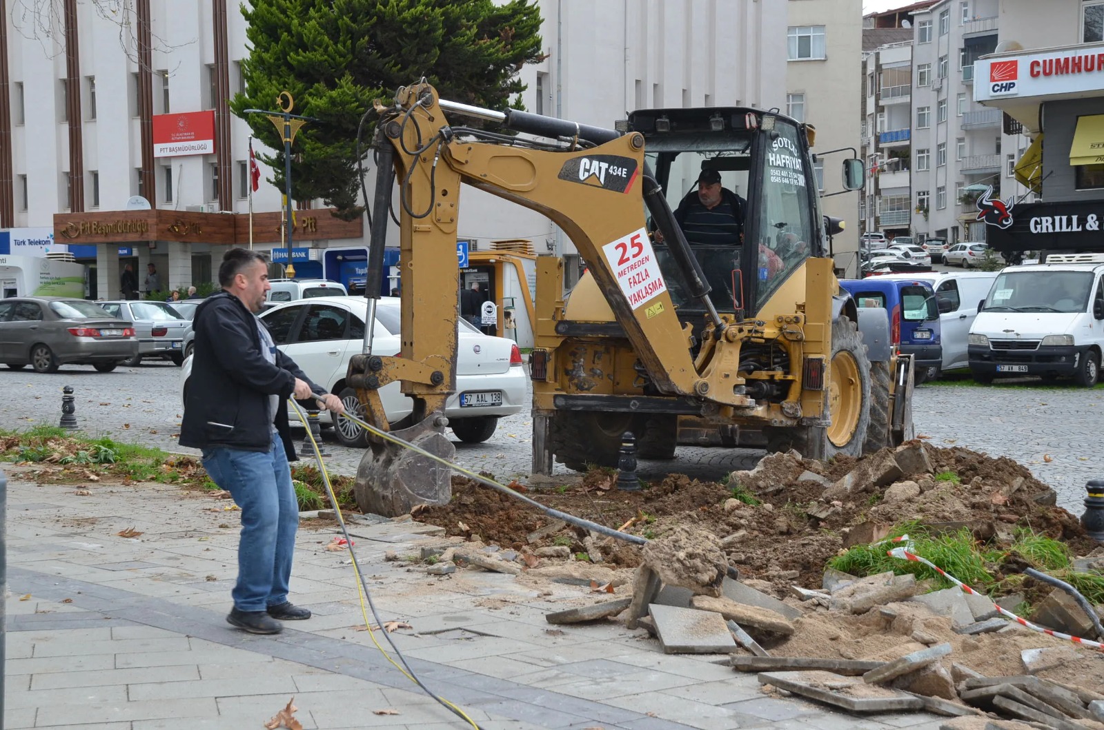 Sinop Belediyesi, Uğur Mumcu meydanında trafik yoğunluğunu azaltmak için yol genişletme çalışması başlattı.