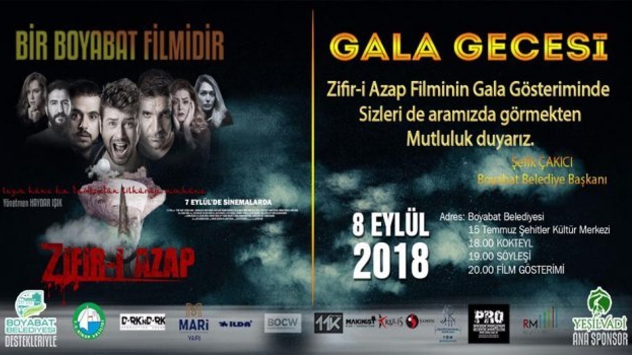 Aynı zaman da 8 Eylülde Zifir-i Azap filminin Boyabat'ta galası yapılacak. Gala tüm oyuncuların katılması bekleniyor. Tüm Türkiye’de 100 ayrı lokasyonda vizyona girecek film internet sitelerinde ve sosyal medyada en çok beklenen filmler arasında yer alıyor.
